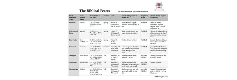 One important thing – the Sabbath is covered before these Feasts are listed in the Bible. It’s the holiest of all the Feasts, and observing it demonstrates to God, others, and ourselves that we belong to God. Although it’s not on this list, it’s of great importance in the life of any Believer. For more info on the Sabbath and how to keep it, visit this page.