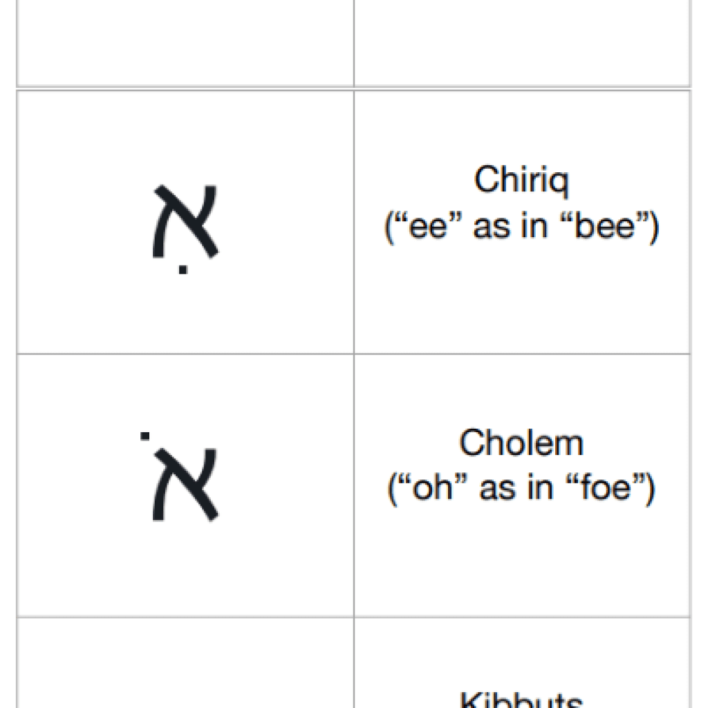 For beginning students of Biblical Hebrew! Free printable PDFs of my Alphabet Flash Cards, Vowel Flash Cards, Alphabet Chart, and Vowel Chart for your Hebrew studies!